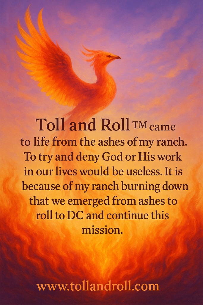 The Toll and Roll™ mission was born from the ashes of burnt justice—forged by betrayal and fueled by faith. We believe God Himself has orchestrated our coming together—not by chance, but by divine design. Among us stand descendants of our Founding Fathers, victims, patriots, and truth-tellers determined to restore what has been stolen.