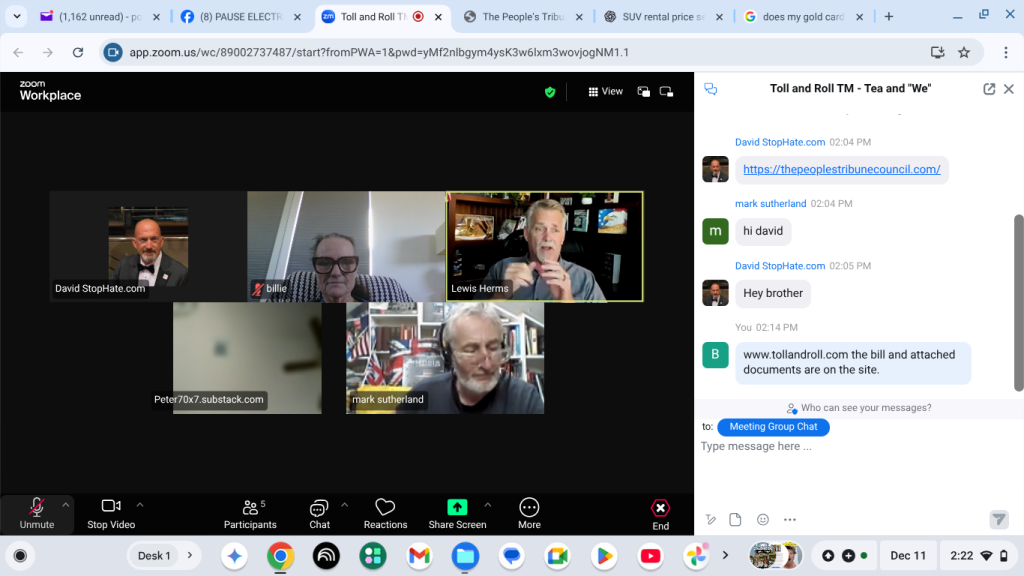 The Toll and Roll D.C. Delegates were given the honor of speaking at the DOJ Press Conference May 2025- led by Ann Vandersteel. Two of our D.C. Delegates stood out at the presser, Tea Hogan at the 22:40 minute and Billie Powers at the 55 minute mark. We are doing the work of, by and for the People